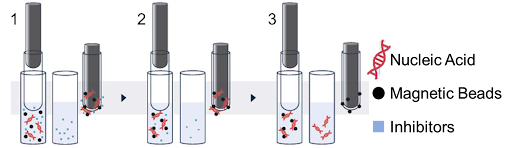El NC-15 Plus es un instrumento cuyo objetivo es extraer ácidos nucleicos desde muestras biológicas. El método que utiliza es de extracción mecánica con separación magnética. La muestra es previamente tratada con proteinasa K para iniciar la digestión de los tejidos.